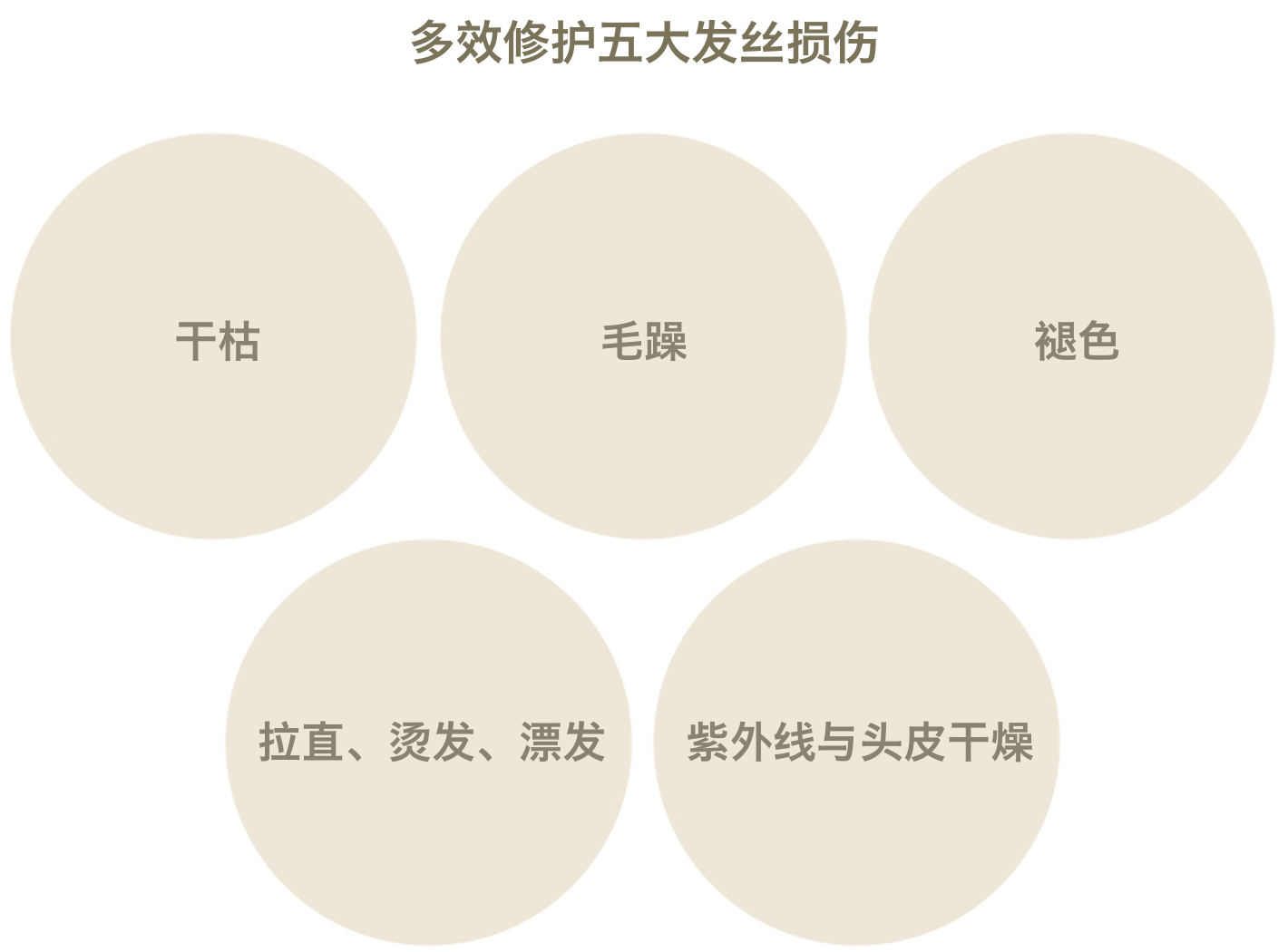 针对干燥、紫外线、染烫与热风所带来的多重损伤,