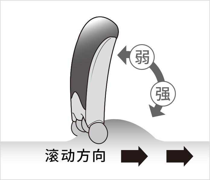 可通过调整握持产品主体时的角度来调整滚轮提拉肌肤的强度。