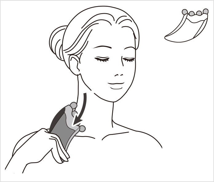 用新月线贴住脖颈,从耳朵下方朝肩膀滑动。