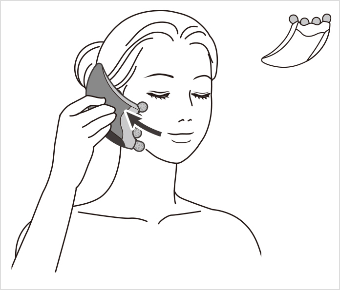 用滚轮沿着整个脸颊向耳朵方向滚动。