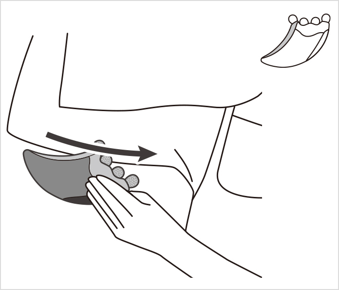 用新月线贴住侧腹,朝肚脐附近滑动。