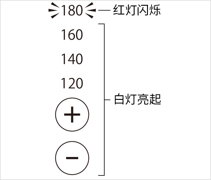 温度指示灯和“+”、“-”指示灯亮白灯,设定温度※指示灯为红灯闪烁。