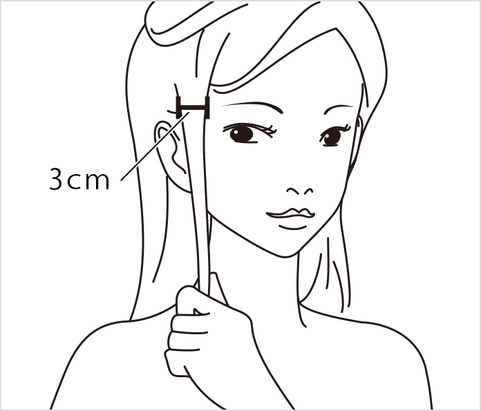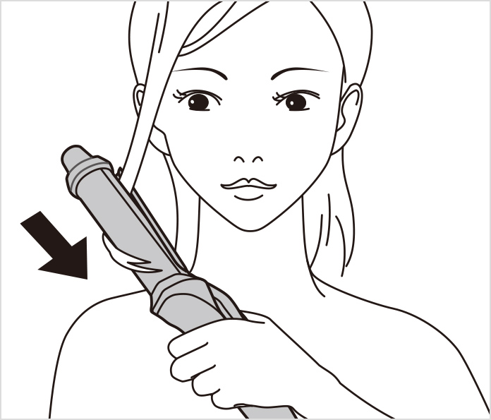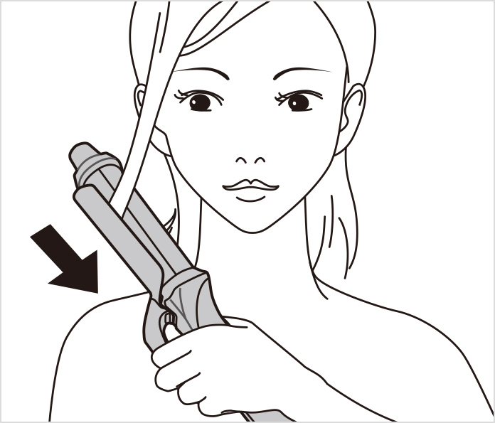 (4)轻轻握住发夹柄,在发夹略微张开的状态下向下滑动,放开头发。
