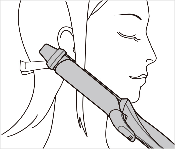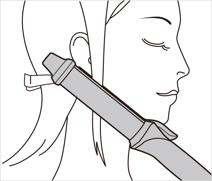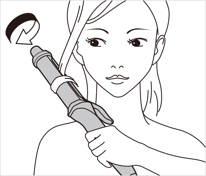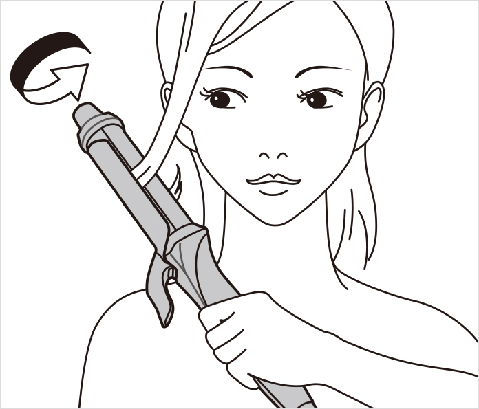 (2)将卷发器的发夹朝内,用发热卷筒中央夹住需要上卷的头发位置,然后将卷发器稍微倾向需要卷起的方向。