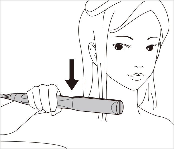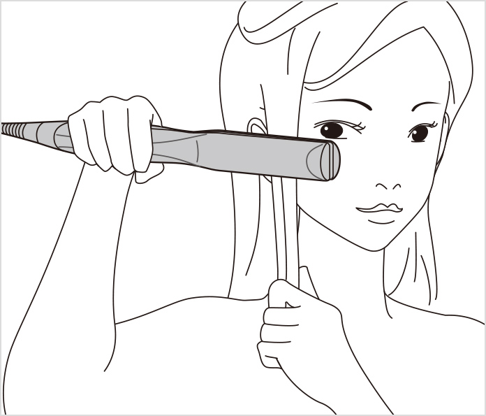 主体稍微朝着希望卷起的方向倾斜,将发束夹在发热板中间。