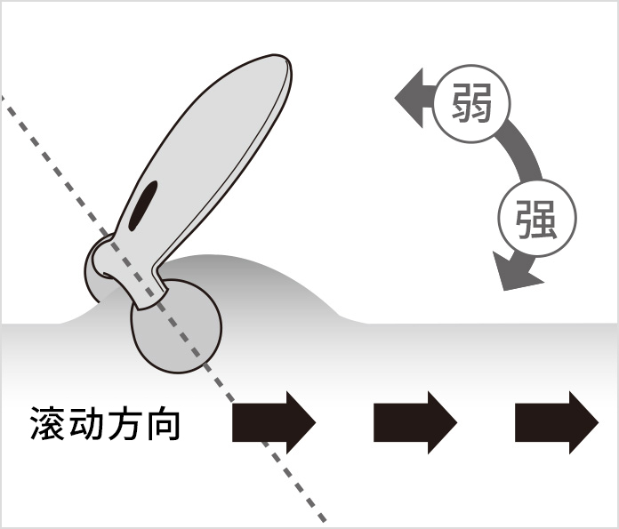 ※该部位皮肤易被滚轮夹住。请适当调整滚轮的角度和强度后,再滚压皮肤。