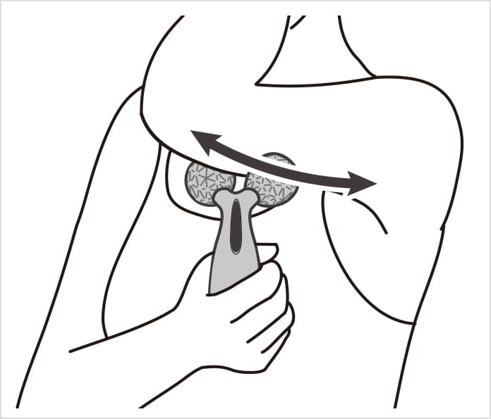 按压腋下的同时,朝胸部中央滚动。